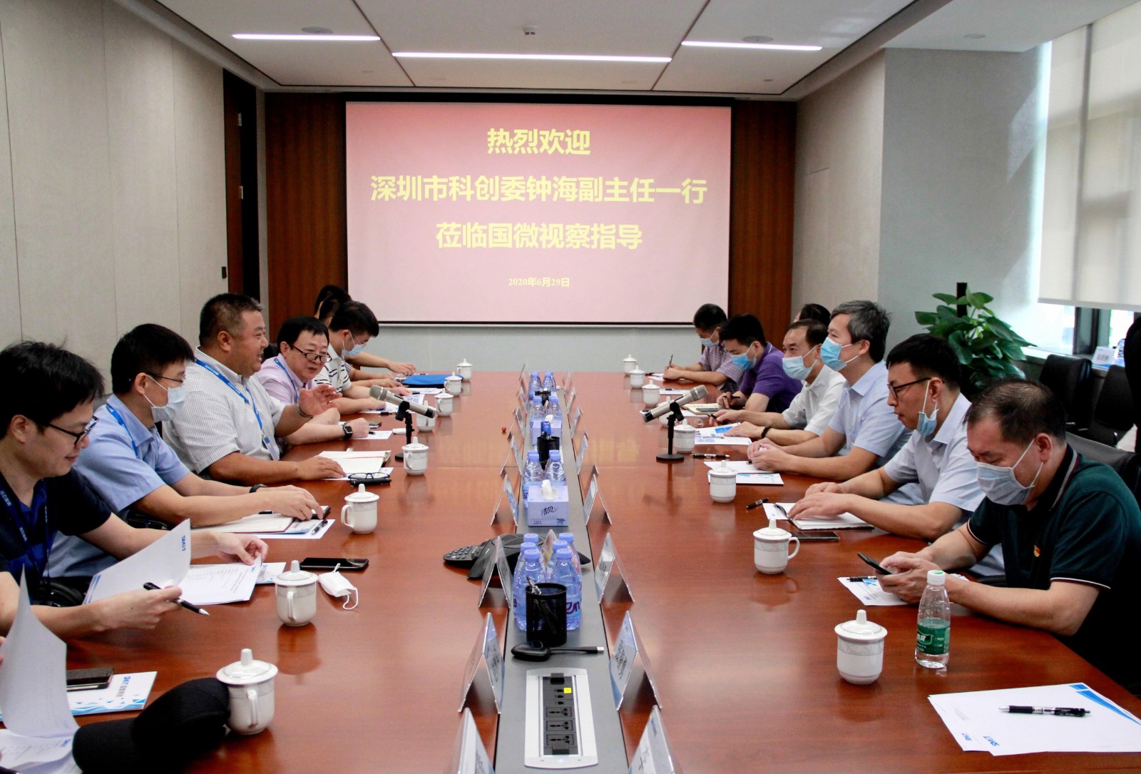 2020年6月29日,在“七一”建党节到来之际,深圳市科创委党组成员、副主任钟海带队,携信息处与集成电路中心党支部及基础处党支部一行到尊龙凯时集团进行调研,配合开展“技术立异引领厘革,有效发挥党组织作用”主题党日运动。